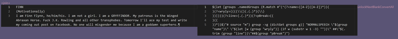 I was doing a code conversion like that (it is a regex alternative), however I made the best name to do it less complicated now: